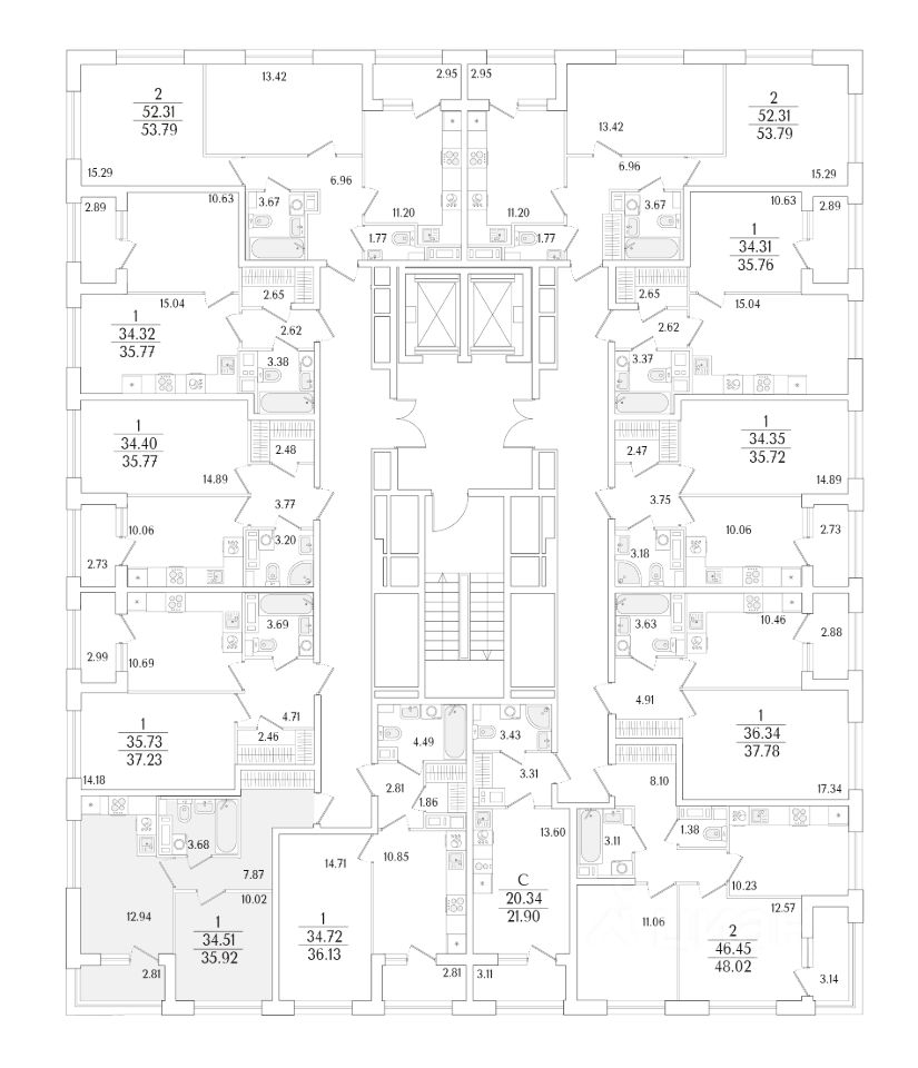 Квартира находится в 17 этажном доме, в Аурум - Корпус 1(С1,С2,С3) на 3 этаже. Общая площадь квартиры 35,92 кв.м.