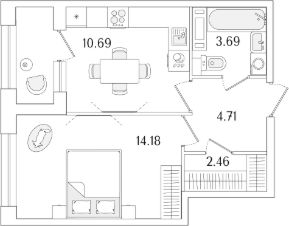 Квартира находится в 17 этажном доме, в Аурум - Корпус 1(С1,С2,С3) на 3 этаже. Общая площадь квартиры 37,23 кв.м.