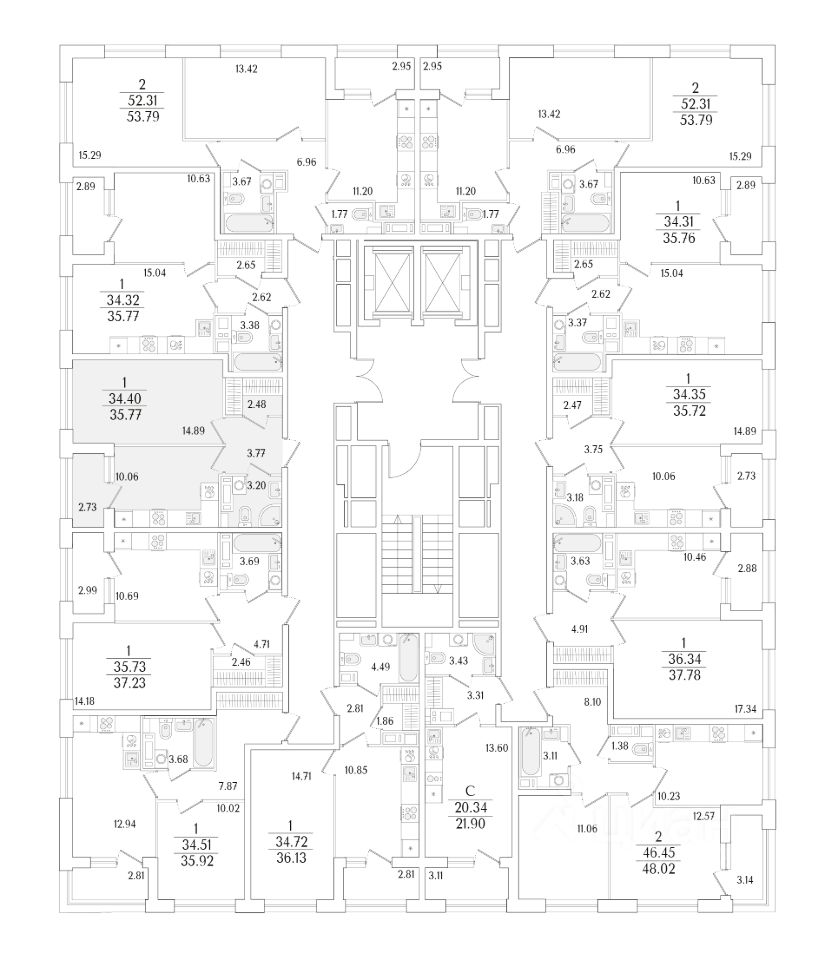 Квартира находится в 17 этажном доме, в Аурум - Корпус 1(С1,С2,С3) на 7 этаже. Общая площадь квартиры 35,77 кв.м.