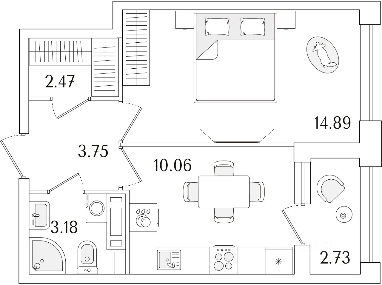 Квартира находится в 17 этажном доме, в Аурум - Корпус 1(С1,С2,С3) на 8 этаже. Общая площадь квартиры 35,72 кв.м.