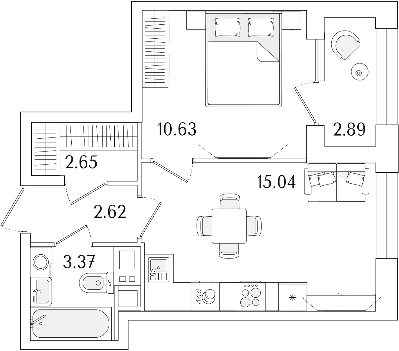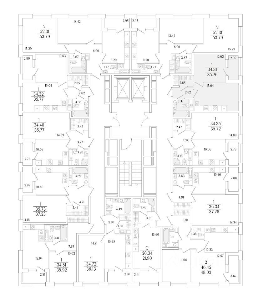 Квартира находится в 17 этажном доме, в Аурум - Корпус 1(С1,С2,С3) на 9 этаже. Общая площадь квартиры 35,76 кв.м.