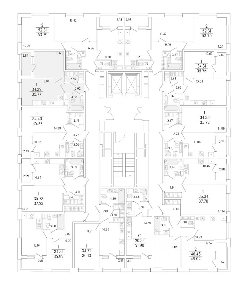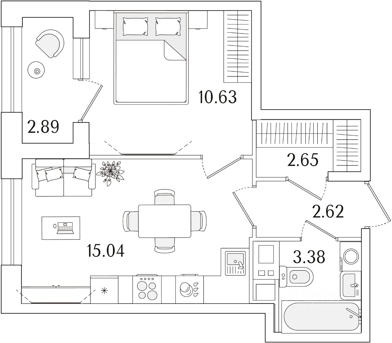 Квартира находится в 17 этажном доме, в Аурум - Корпус 1(С1,С2,С3) на 10 этаже. Общая площадь квартиры 35,77 кв.м.