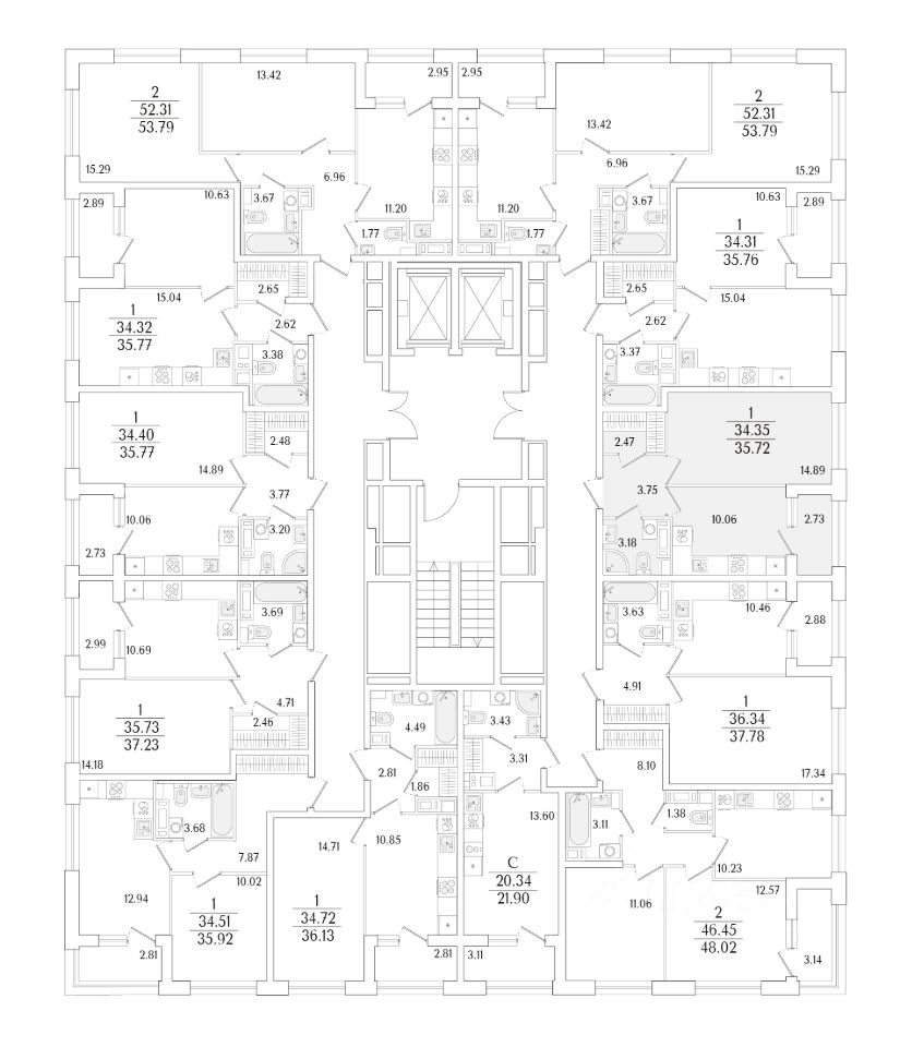 Квартира находится в 17 этажном доме, в Аурум - Корпус 1(С1,С2,С3) на 10 этаже. Общая площадь квартиры 35,72 кв.м.