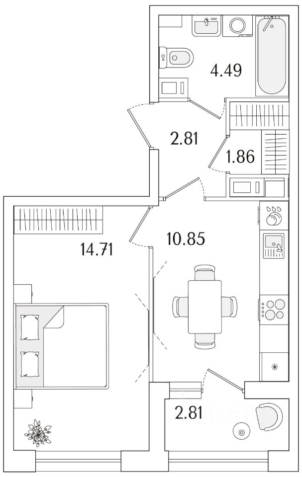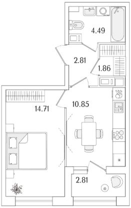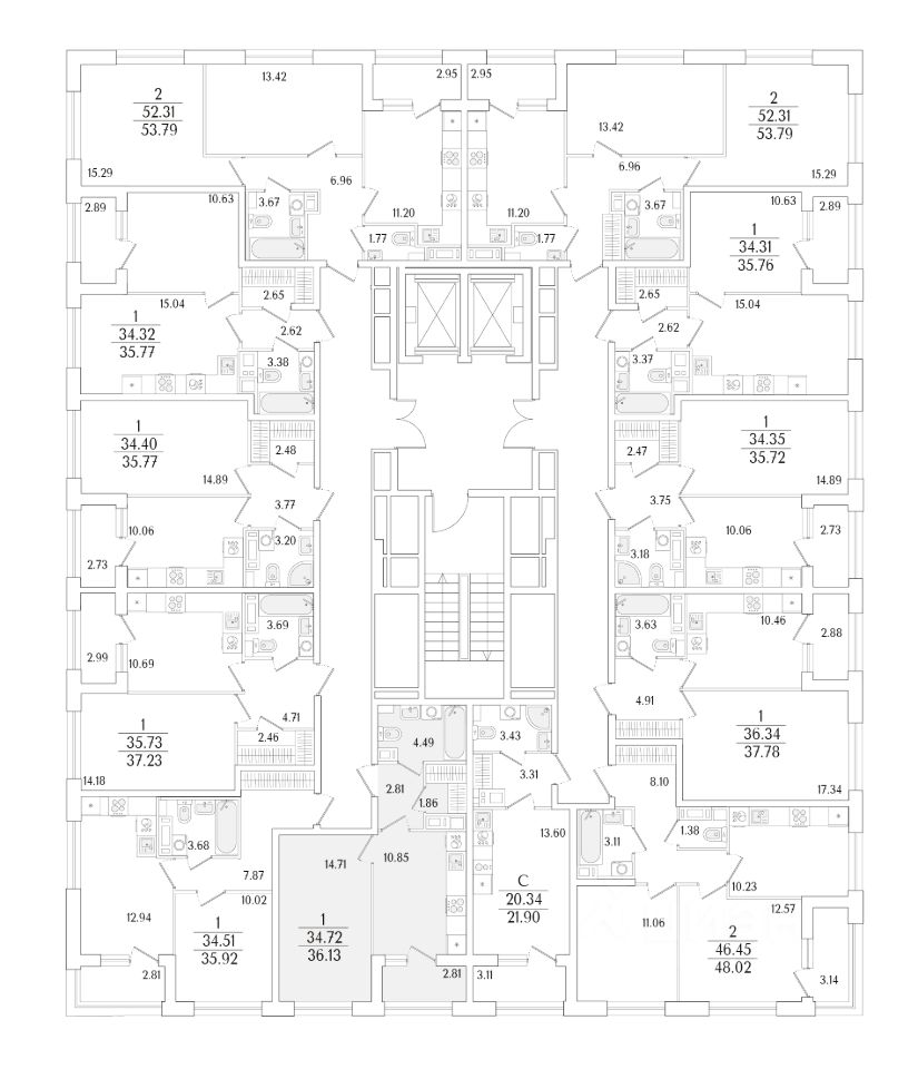 Квартира находится в 17 этажном доме, в Аурум - Корпус 1(С1,С2,С3) на 11 этаже. Общая площадь квартиры 36,13 кв.м.