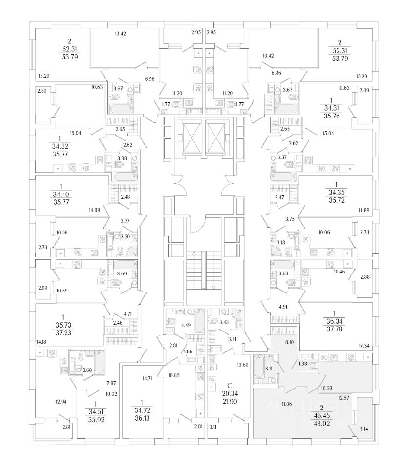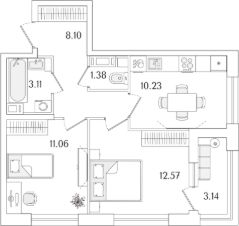 Квартира находится в 17 этажном доме, в Аурум - Корпус 1(С1,С2,С3) на 11 этаже. Общая площадь квартиры 48,02 кв.м.