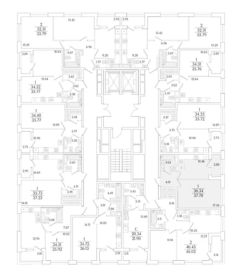 Квартира находится в 17 этажном доме, в Аурум - Корпус 1(С1,С2,С3) на 14 этаже. Общая площадь квартиры 37,78 кв.м.