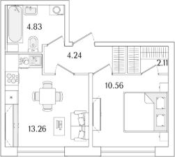 Квартира находится в 17 этажном доме, в Аурум - Корпус 1(С1,С2,С3) на 1 этаже. Общая площадь квартиры 35,00 кв.м.