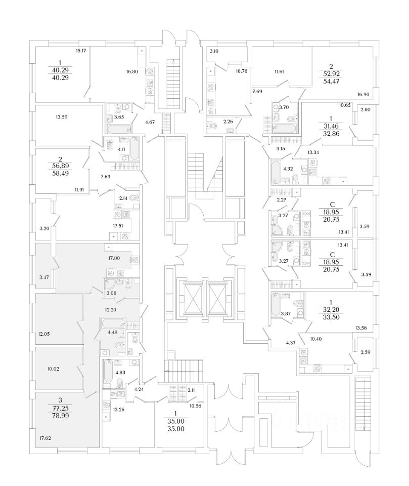 Квартира находится в 17 этажном доме, в Аурум - Корпус 1(С1,С2,С3) на 1 этаже. Общая площадь квартиры 78,99 кв.м.