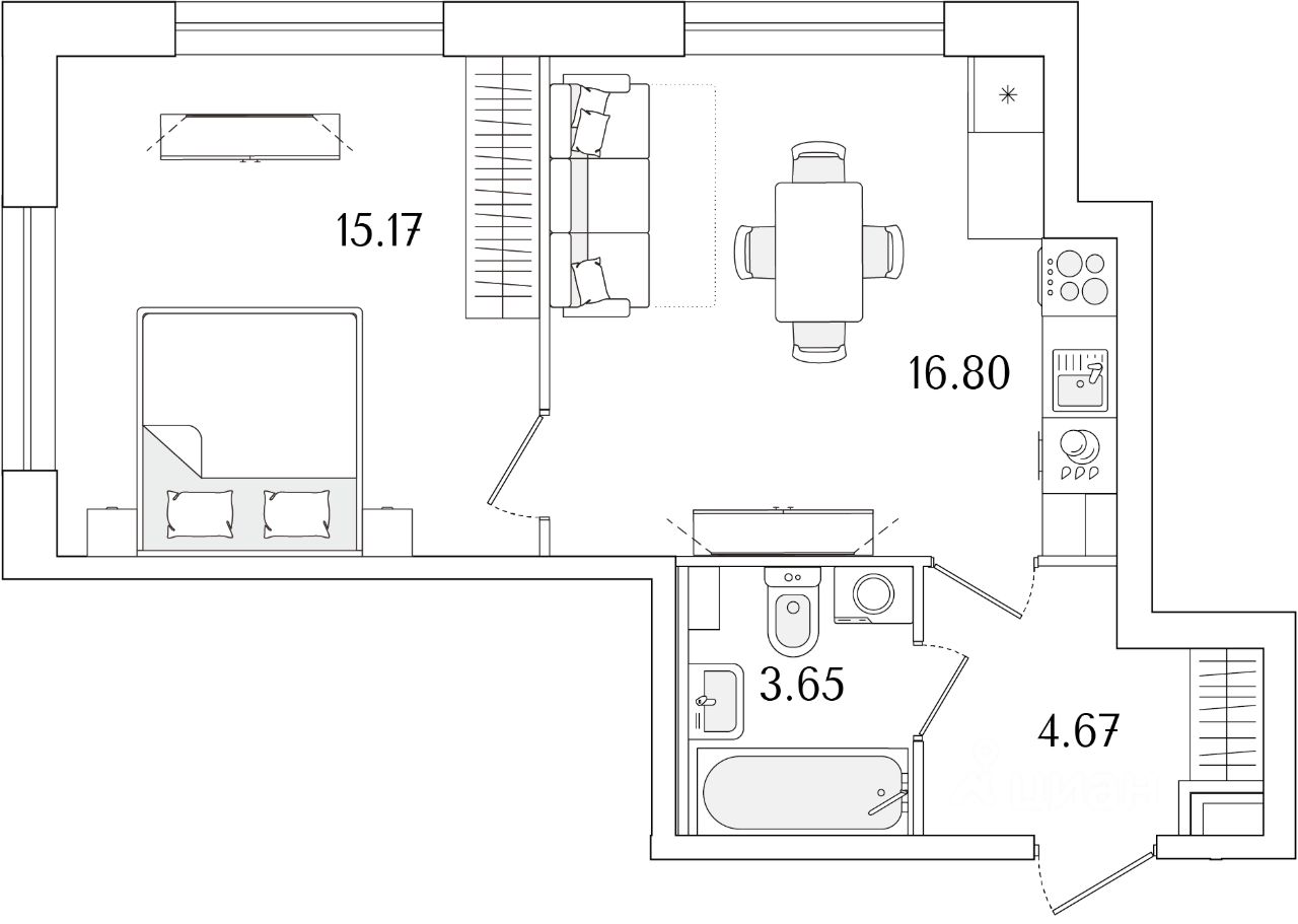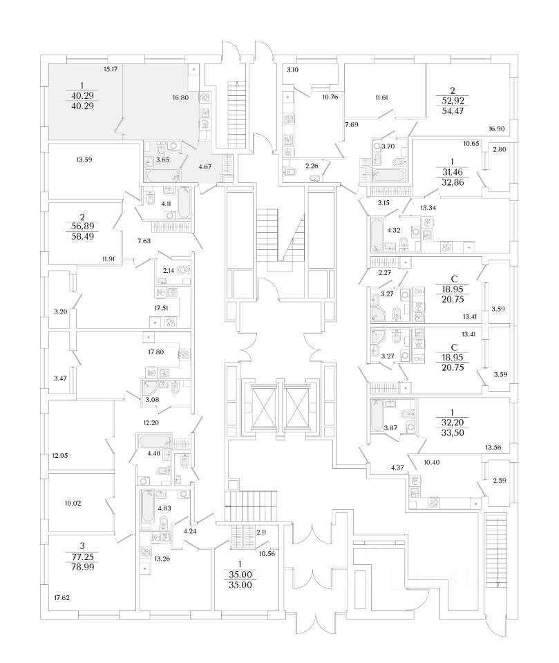 Квартира находится в 17 этажном доме, в Аурум - Корпус 1(С1,С2,С3) на 1 этаже. Общая площадь квартиры 40,29 кв.м.