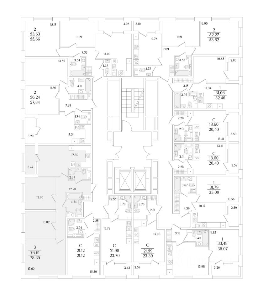 Квартира находится в 17 этажном доме, в Аурум - Корпус 1(С1,С2,С3) на 2 этаже. Общая площадь квартиры 78,35 кв.м.