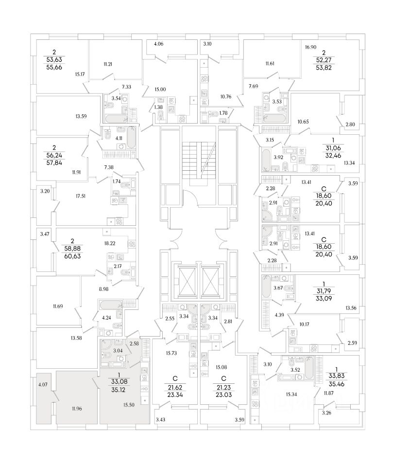 Квартира находится в 17 этажном доме, в Аурум - Корпус 1(С1,С2,С3) на 10 этаже. Общая площадь квартиры 35,12 кв.м.
