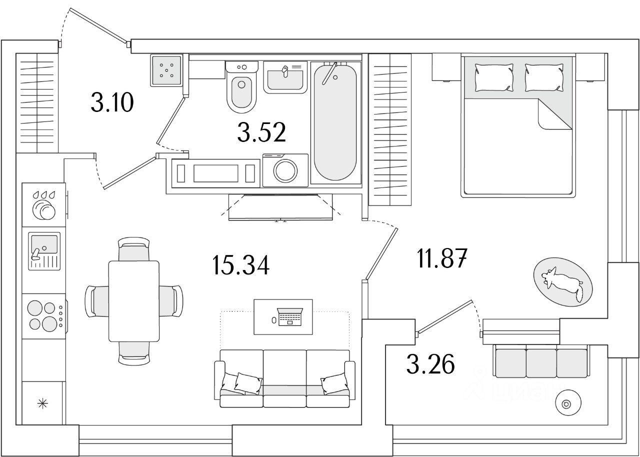 Квартира находится в 17 этажном доме, в Аурум - Корпус 1(С1,С2,С3) на 13 этаже. Общая площадь квартиры 35,46 кв.м.