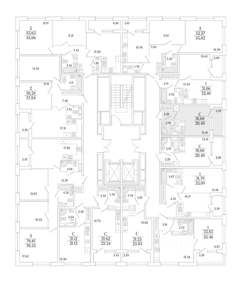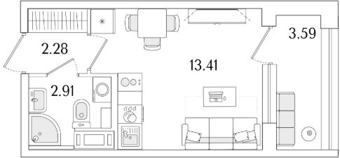 Квартира находится в 17 этажном доме, в Аурум - Корпус 1(С1,С2,С3) на 14 этаже. Общая площадь квартиры 20,40 кв.м.