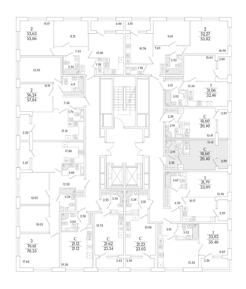 Квартира находится в 17 этажном доме, в Аурум - Корпус 1(С1,С2,С3) на 14 этаже. Общая площадь квартиры 20,40 кв.м.