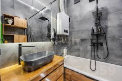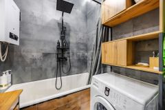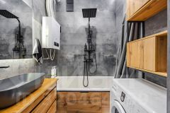 Ремонт выполнен из современных качественных материалов. Напольное покрытие из керамогранита, везде предусмотрена система теплый пол, с отдельной регулировкой в каждой зоне. Во всей квартире стоят пластиковые окна, современные радиаторы отопления, потолки из гипрока.