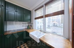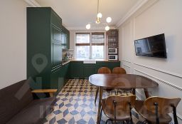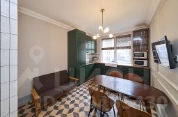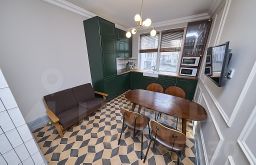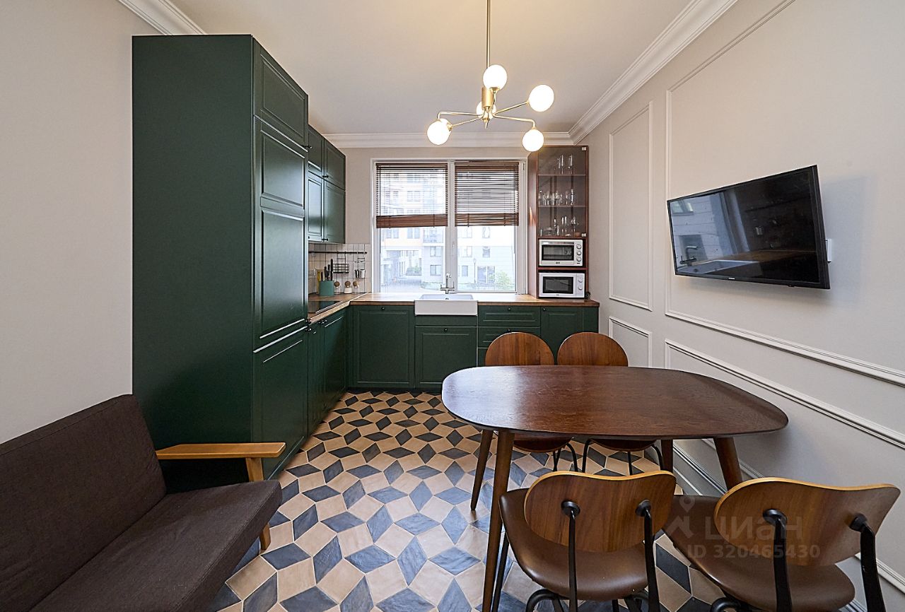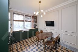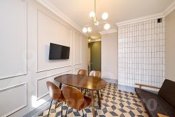 - Просторная кухня-гостиная с обеденной зоной и элегантным шкафом для бокалов (шпон манзонии), идеальна для приёма гостей.