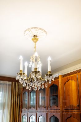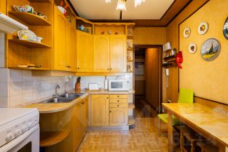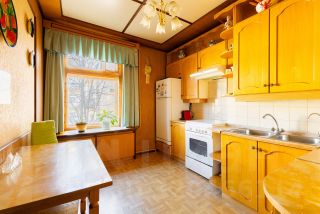 Эта уютная и интеллигентная квартира принадлежит одной семье уже более 30 лет. Здесь был выполнен качественный ремонт с использованием дорогих материалов: красного дерева, позолоты и витебского дубового паркета. Оконные блоки изготовлены из натурального дерева, двери выполнены из массива с элементами красного дерева, а экраны на батареи и подоконники из красного дерева создают особый шарм и уникальность.