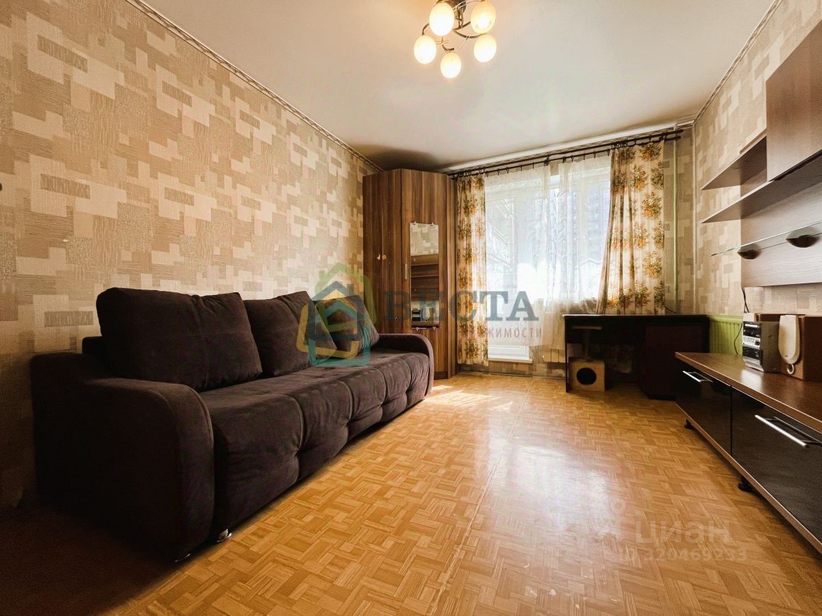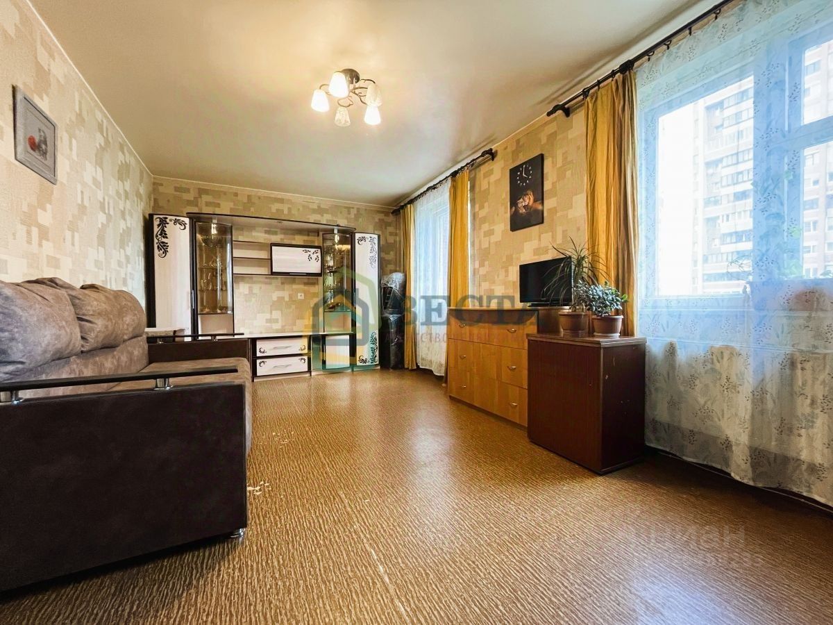 В квартире типовой ремонт, на полу линолеум, в санузле - плитка, большая лоджия разделенная на две и выходами из двух комнат. Окна выходят в на две стороны. Мебель и техника остаются счастливому покупателю.