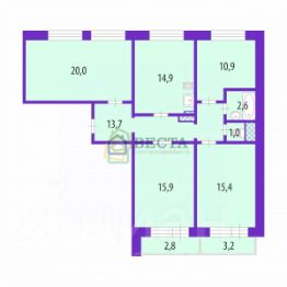 Просторная четырехкомнатная квартира площадью 94,4 квадратных метра, располагающаяся на 3 этаже двенадцатиэтажного дома в 20 минутах ходьбы до метро Рыбацкое