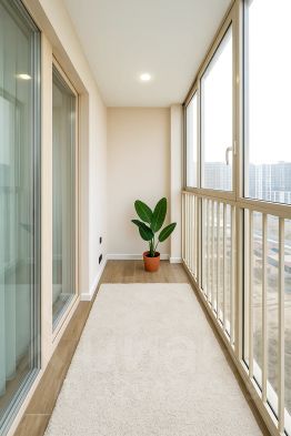 Большая остекленная лоджия с видом на зелень (отличное место для кабинета)