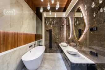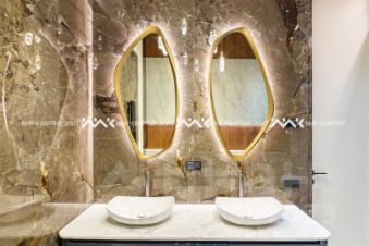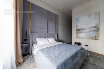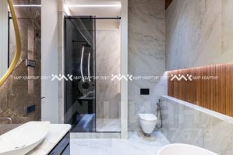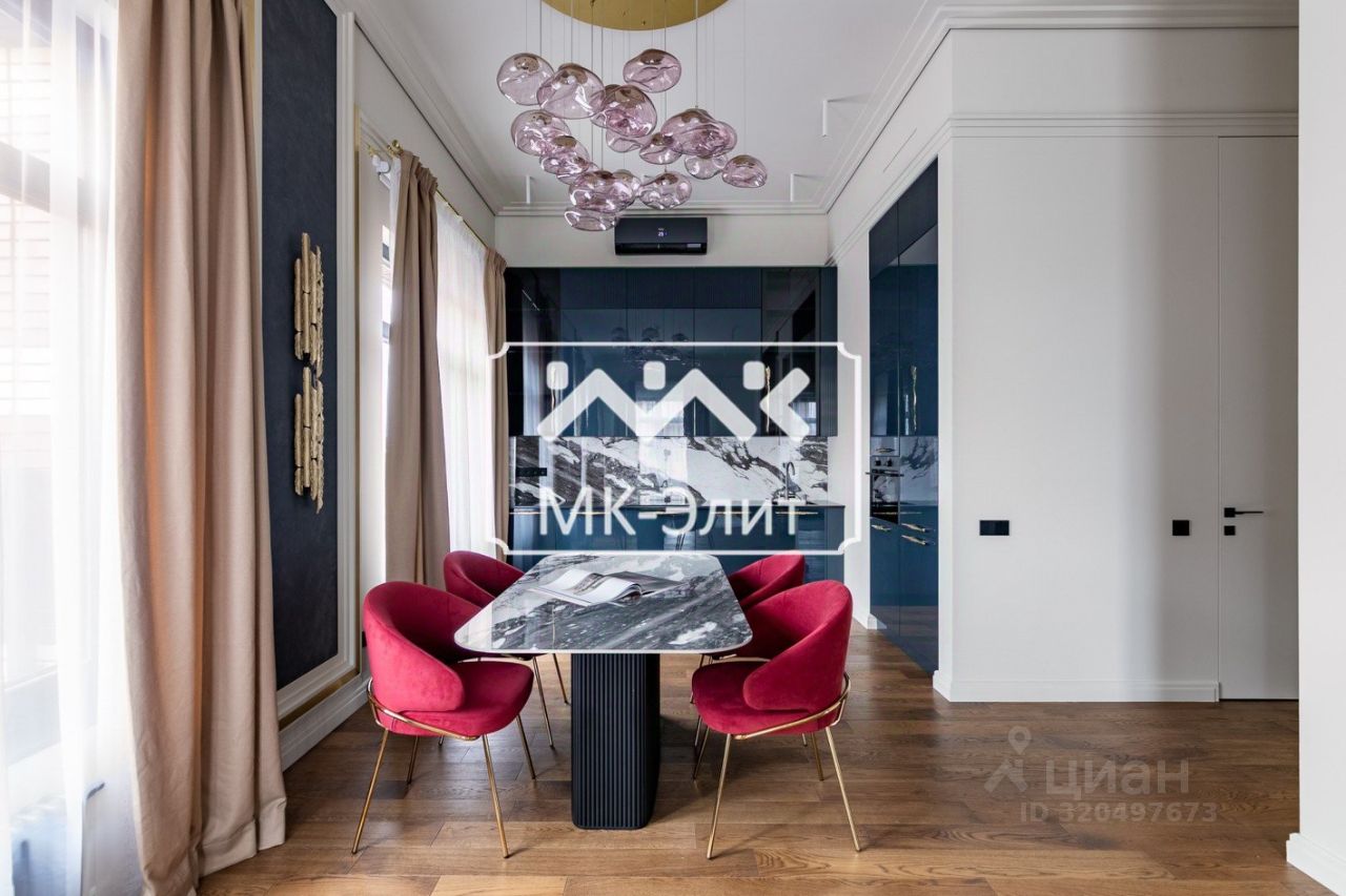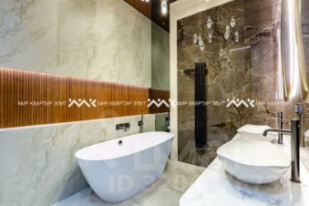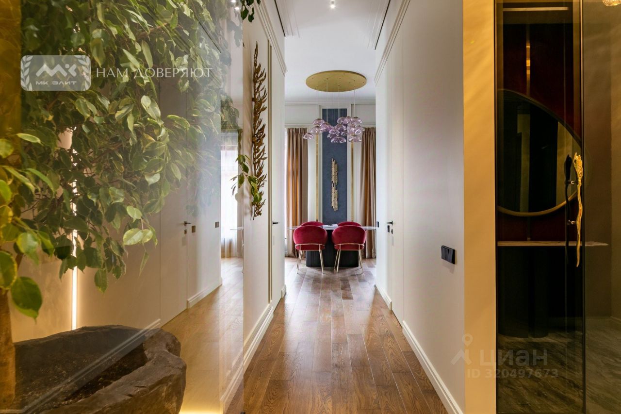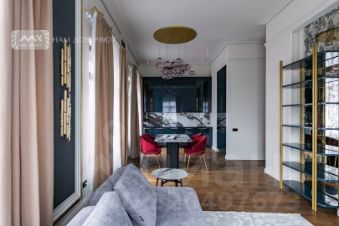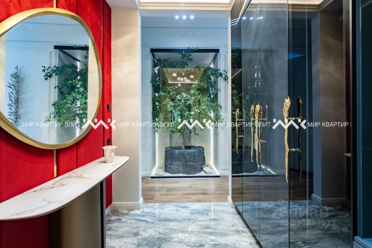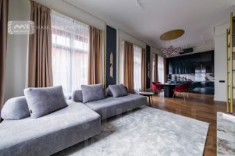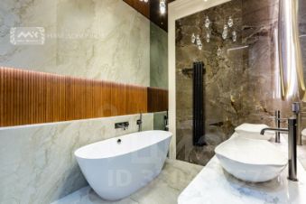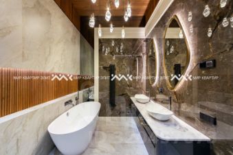 В отделке используются дорогостоящие материалы и освещение элитных европейских брендов. Квартира укомплектована эксклюзивной мебелью, изготовленной на заказ и техникой премиум-класса.