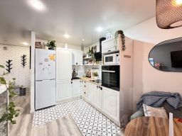 Современный дизайнерский ремонт, продуманная кухня-гостиная позволит с комфортом наслаждаться семейной трапезой.