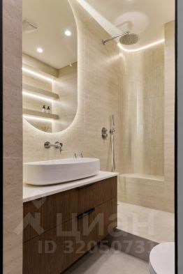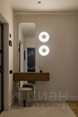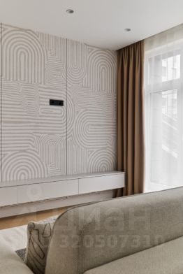 В квартире много света. В отделке использовались материалы высокого качества: широкоформатный керамогранит, на полу инженерная доска, ванна из литиевого мрамора, кухонный гарнитур и шкафы выполнены под заказ, фасады кухни из мдф, столешница и подоконники из камня, дополнительно установлен измельчитель отходов.
