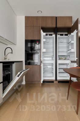 Из техники присутствуют: посудомоечная машина, духовой шкаф, индукционная плита, встроенный холодильник (2 шт), микроволновая печь. Предусмотрены выходы под телевизоры, Wi-Fi, стиральную и сушильную машины. Видеодомофон.