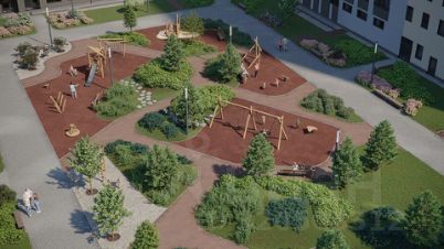 Здесь вы найдете полноценное место для отдыха и мероприятий с ярусными скамейками и большой елью, несколько детских площадок и спортивный кластер с баскетбольной и волейбольной площадками, воркауттренажерами и лужайкой для йоги. Паркбульвар станет настоящим хабом для пешеходов — дорожки к популярным точкам инфраструктуры будут переплетаться с основной транзитной дорогой с асфальтовым и набивным покрытием, по которой будет удобно идти, бежать или ехать на самокате.