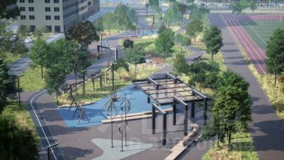 Здесь вы найдете полноценное место для отдыха и мероприятий с ярусными скамейками и большой елью, несколько детских площадок и спортивный кластер с баскетбольной и волейбольной площадками, воркауттренажерами и лужайкой для йоги. Паркбульвар станет настоящим хабом для пешеходов — дорожки к популярным точкам инфраструктуры будут переплетаться с основной транзитной дорогой с асфальтовым и набивным покрытием, по которой будет удобно идти, бежать или ехать на самокате.
