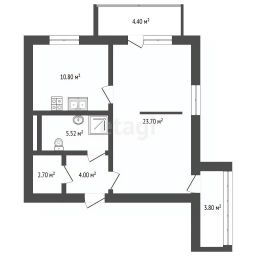 Гостиная с разделением на 2 зоны 23,7м² с выходом из комнат на 2 просторных лоджии 4,4м² и 3,8м², кухня-гостиная 10,8м², а также в прихожей зоне располагается гардеробная комната 2.7м²!;