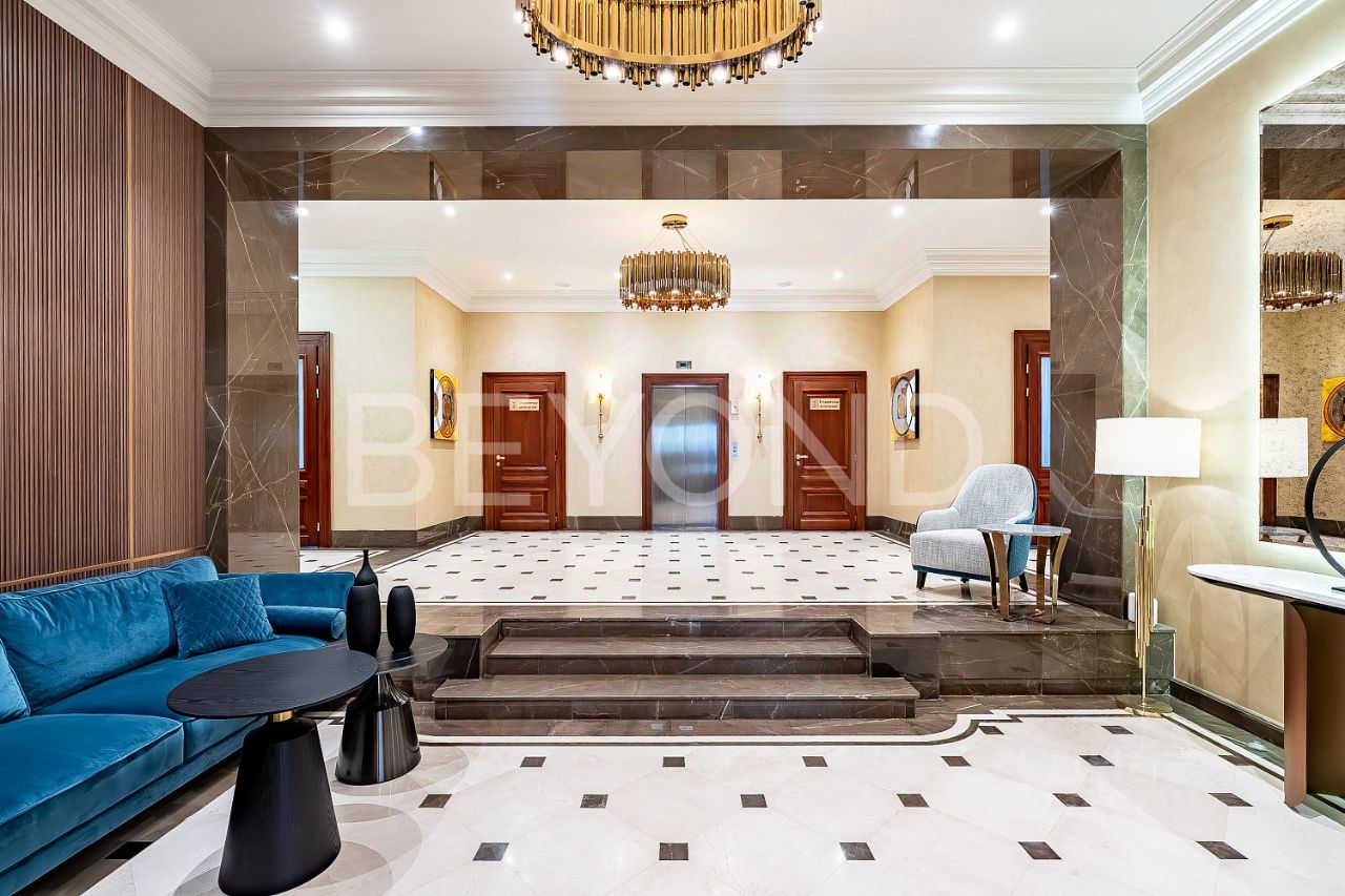 К продаже предлагается резиденция с функциональной планировкой общей площадью 244,9 кв.м. Из кухни-столовой 25,55 кв.м. можно выйти на широкую и просторную террасу 37 кв.м. и насладиться тишиной, пением птиц и свежим воздухом. Пространство позволяет организовать 3 мастер-спальни, просторную гостиную 48,37 кв.м. По необходимости можно организовать дополнительную детскую или комнату под кабинет, предусмотрены три гардеробные и подсобные помещения под бытовые нужды. Высокие потолки 3,6 метра, установлены двухкамерные дубовые стеклопакеты с высоким уровнем звукоизоляции, входные двери выполнены из массива дуба. Выровнены и подготовлены под чистовую отделку стены, бетонная стяжка пола, есть возможность установить дровяной камин. В доме установлена современная система вентиляции с персональной разводкой и организована автономная система кондиционирования. Большим преимуществом является наличие собственной котельной, для контроля теплообмена установлены радиаторы Kermi (Германия). Также предусмотрены новейшие системы охранно-пожарной сигнализации и пожаротушения, система очистки и фильтрации воды. Из подземного паркинга на бесшумном лифте Otis, с отделкой из деревянными панелей, можно подняться до своих апартаментов, на этаже расположено всего 3 резиденции. Дизайнерская входная группа с мраморными полами и венецианской штукатуркой на стенах спроектирована лондонской студией Orange Project. Парадные лестницы выполнены из путиловского камня и дополнены коваными ограждениями и поручнями из дуба. Фасад привлекает к себе внимание изысканной викторианской архитектурой, где создана атмосфера респектабельного закрытого клуба. В лобби дома и холлах представлены работы современного мексиканского художника Эммануэля Легарреты. Завораживающие цвета и колористические решения картин придают особую энергетику пространству.