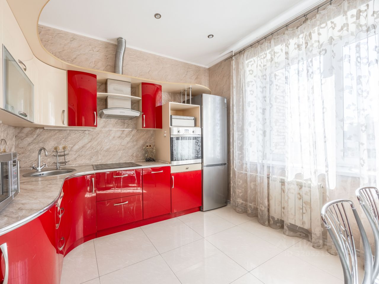 Квартира полностью готова к проживанию: выполнен качественный евроремонт, установлена современная мебель, включая кухонный гарнитур и спальные места. В наличии вся необходимая техника: холодильник, плита, духовой шкаф, микроволновая печь, стиральная и посудомоечная машины, телевизор. Санузел совмещенный, с душевой кабиной. Из окон открывается прекрасный вид на улицу, а два балкона добавляют удобства и возможности для отдыха.