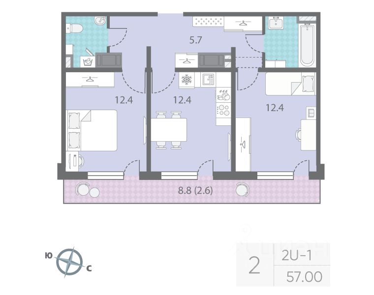 Продается 2-комнатная квартира в ЖК "Цветной город" на 6 этаже. Общая площадь составляет 57.00 кв. м. Квартира с чистовой отделкой Срок сдачи дома: 3 квартал 2026. Жилой комплекс "Цветной город" располагается по адресу Санкт-Петербург, Красногвардейский.