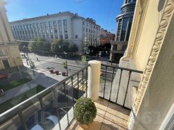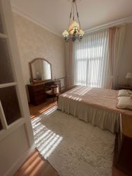 Квартира очень удобно расположена в части дома вдоль 6-й Советской улицы. Окна трех комнат выходят на 6-ю Советскую, окно кухни- в большой светлый двор. Площадь квартиры общая 82,3 м, жилая 51,9 м. Квартира солнечная, теплая, с исключительно удобной и рациональной планировкой: большой светлый коридор и три изолированных комнаты правильной прямоугольной формы, близкой к квадратной. Перепланировок не было.