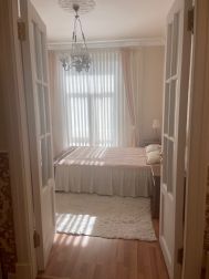 Гостиная 22,8 м, детская 15,4 м, спальня 13,7 м. В гостиной и спальне имеются балконы, мощеные плиткой. Окна в этих комнатах с панорамным остеклением до пола. С балконов открывается вид на Церковь Рождества на Песках. Потолки 3,1 м., по краю потолков восстановлен лепной фриз.