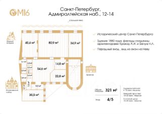 Квартира расположена на четвертом этаже. Общая площадь - 321 кв.м.