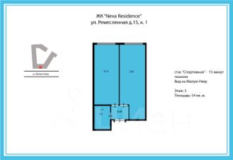 Площадь — 54 м²Интерьер — свободная планировка: кухня-гостиная 24,5 м² и жилая зона 21 м². Пространство без перегородок открывает возможности для индивидуального архитектурного решения.