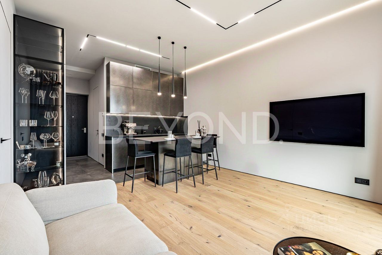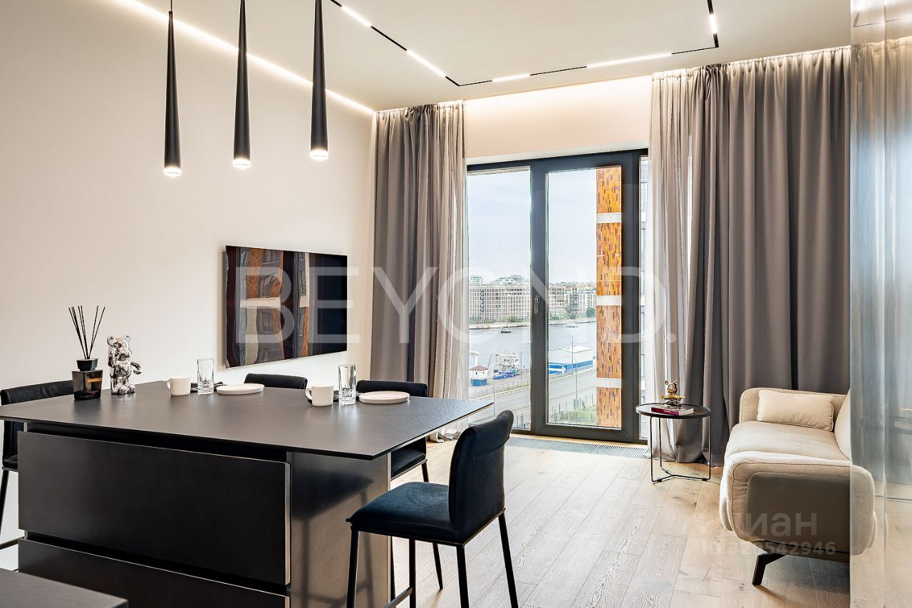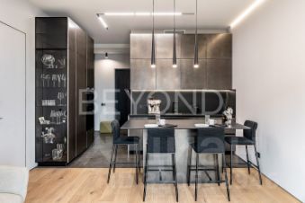 Современный ремонт выполнен по дизайн-проекту. Грамотное планирование пространства: просторная кухня-гостиная с зонированием на зону приготовления с островом и зону для комфортного отдыха, светлая спальня с местами для хранения, гостевая спальня (детская или кабинет), ванная комната с душевой и хоз.блоком, функциональный холл. Мебель и техника - ведущие европейские производители, кухня Cesar, техника SMEG. Для максимального комфорта: система VRV кондиционирования, приточно-вытяжной вентиляции, интеллектуальная система отопления, премиальное остекление Reynaers, дополнительная звукоизоляция.