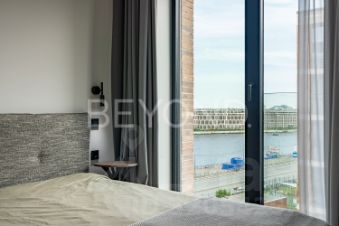 Апартаменты площадью 62,7 кв. м расположены в Docklands Family на 8-м этаже с панорамным остеклением и видами на водную гладь Малой Невки.