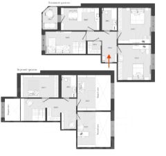 - Квартира в двух уровнях (основной этаж + мансарда), с просторной кухней-столовой, пятью изолированными комнатами и террасой.