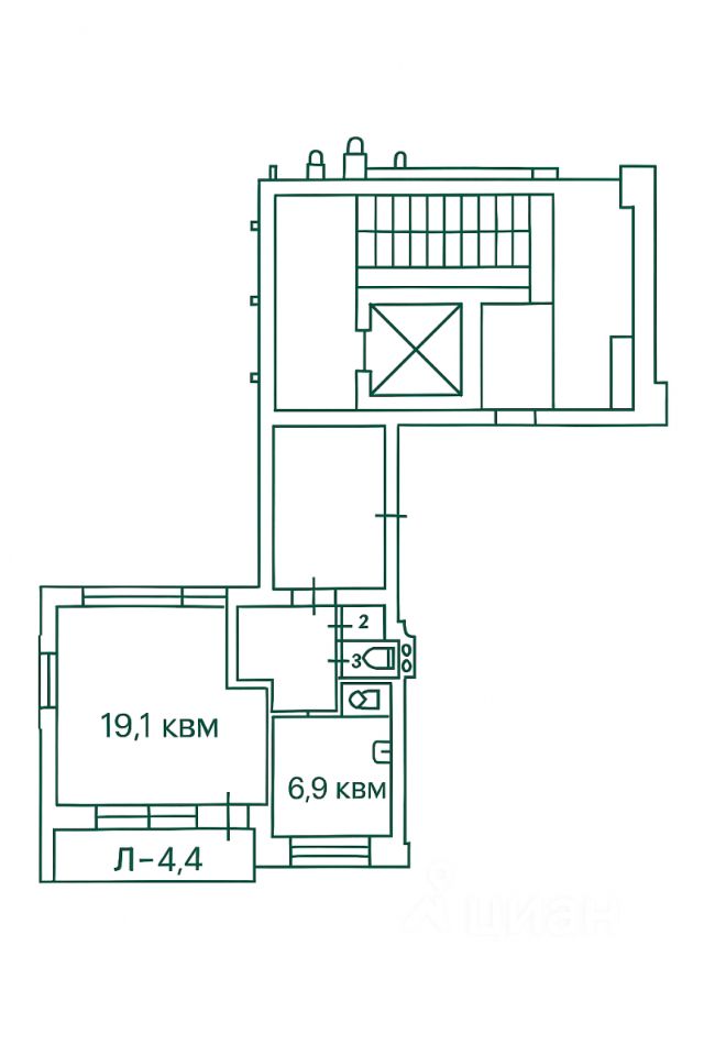 - 2 окна в жилой комнате 19,1 квм. выходят в зеленый двор