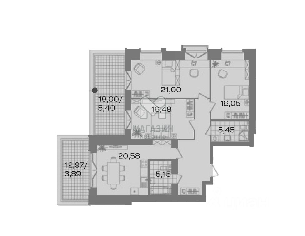Классическая изолированная планировка включает три уютные комнаты (16,05 м², 16,48 м², 21 м²), обеспечивая каждому члену семьи свое пространство, а кухня площадью 20,58 м² станет идеальным местом для семейных ужинов и кулинарных экспериментов. Дополнительно в квартире предусмотрены два раздельных санузла, что делает ее еще более функциональной.