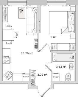 Продаётся однокомнатная квартира в жилом комплексе ЦДС "Новые Горизонты", участок 4, Корпус 14