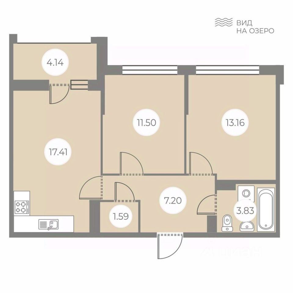 Общая площадь56,76 м²