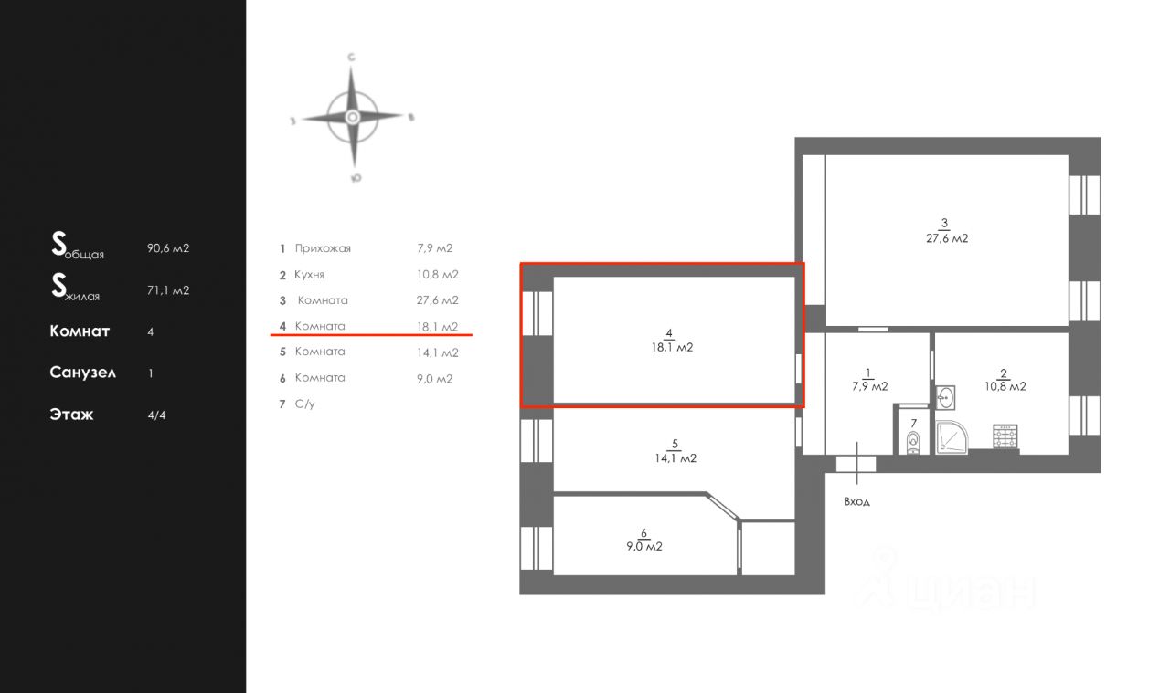 Площадь комнат