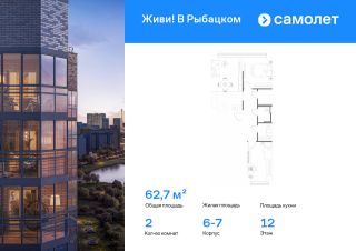 Строим кварталы для жизни с заботой о будущем. Предлагается 2-комнатная квартира комфорт-класса 62,71 кв.м в корпусе 6-7 на 12 этаже, в ЖК "Живи! В Рыбацком"
