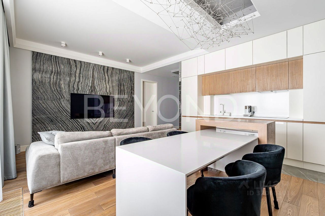 К продаже предлагается изысканная квартира площадью 109 кв. м с двумя спальнями, 3 санузлами и просторной кухней-гостиной, оформленной с безупречным вкусом. Высококачественный ремонт дополнен продвинутой инженерией: приточно-вытяжная вентиляция, индивидуальное кондиционирование в каждой комнате, многоступенчатая система очистки воды. Мастер-спальня с элегантной гардеробной и роскошным санузлом открывает вид на благоустроенный внутренний двор. Окна детской или кабинета обращены к живописной реке Ждановка.