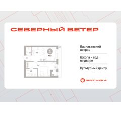 Однокомнатная квартира от застройщика с предчистовой отделкой в ЖК "Северный ветер" на 2 этаже. Общая площадь: 45.77 кв.м., жилая: 15.7 кв.м., площадь просторной кухни-столовой: 17.3 кв.м. Все окна выходят на одну сторону. В квартире один балкон, один совмещенный санузел. Высота потолков 3.1 м.