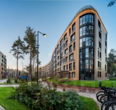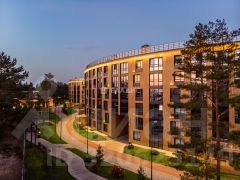 Жилой комплекс бизнес-класса: закрытая территория, охрана, видеонаблюдение, паркинг и благоустроенная придомовая территория с лаунж-зонами.